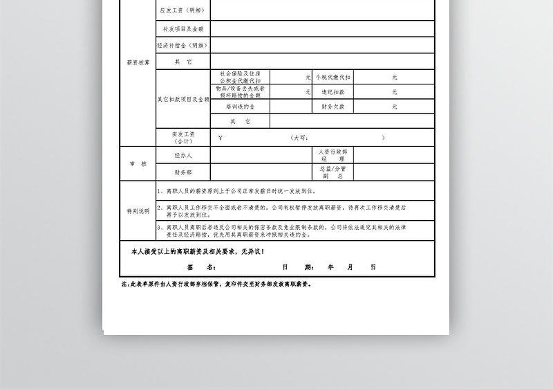2022員工離職單薪資結算清單Excel模板免費下載包含