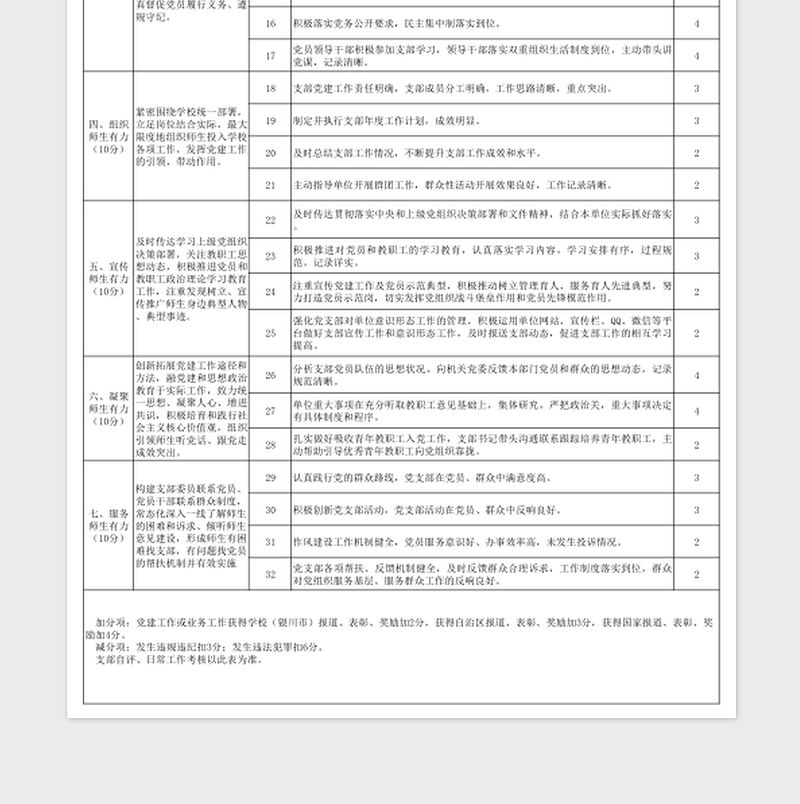 機(jī)關(guān)黨委黨支部日常工作考核標(biāo)準(zhǔn)