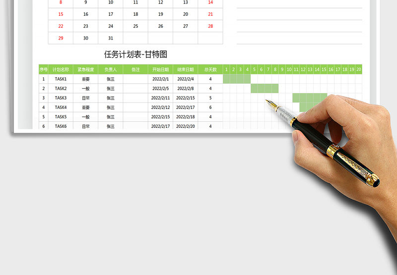 2021年日歷日程工作計劃表-甘特圖免費下載