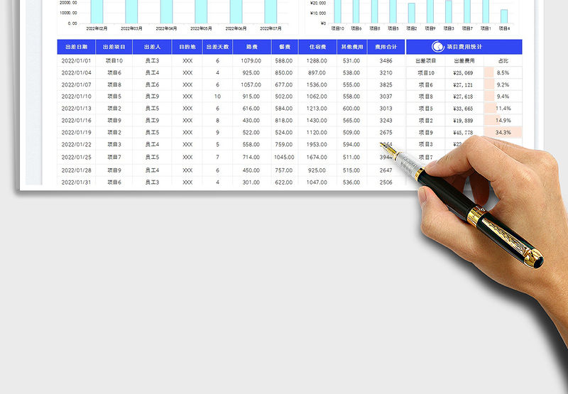 項(xiàng)目出差費(fèi)用細(xì)統(tǒng)計(jì)表