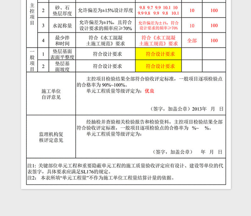 2021年干砌石護坡單元工程質量驗收評定表包含
