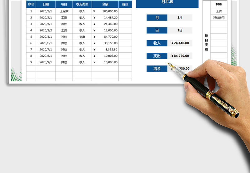 2021年財務收支明細表-按月查詢每日收支明細包含