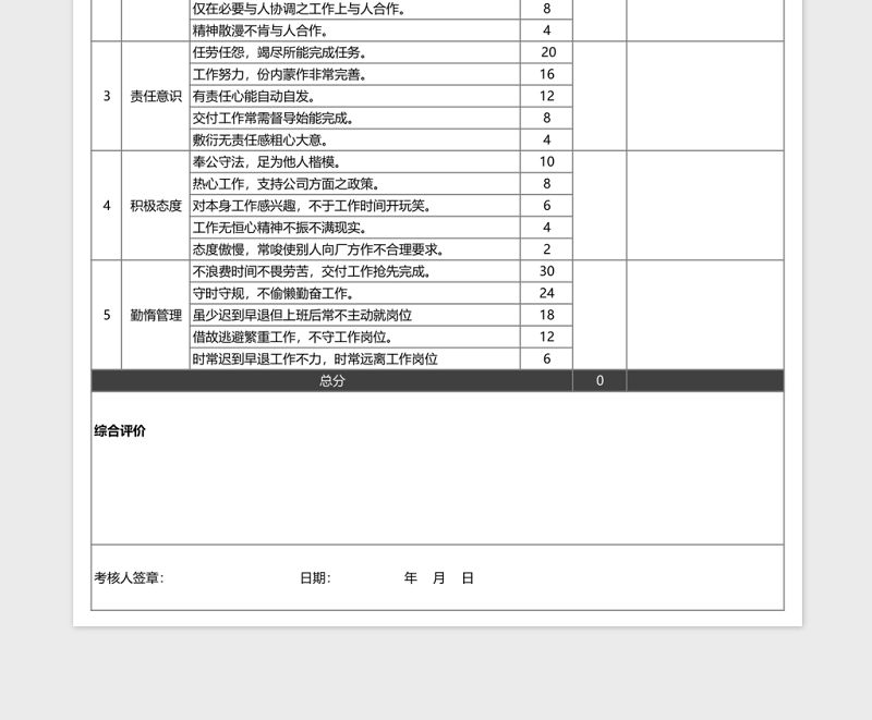 銷售人員業務管理人員績效考核評價表excel表格模板包含