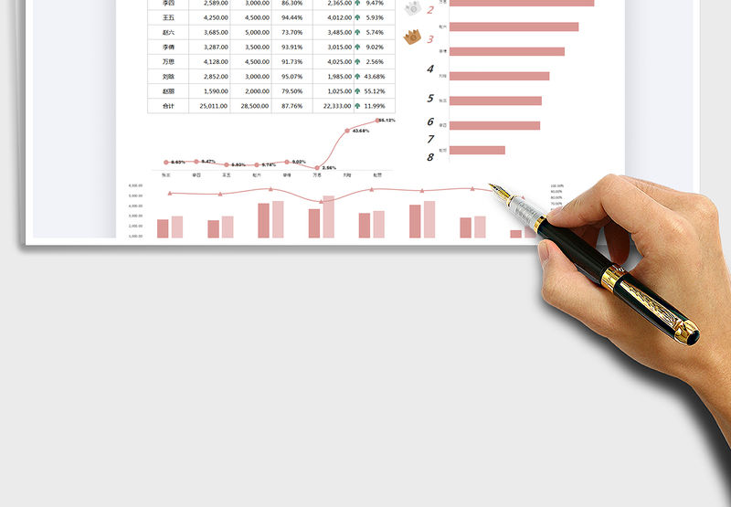 銷售業績分析表雙柱形分析表Excel模板表格包含