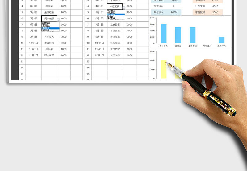 2021年費用收支明細表(自動累計——選擇框變色功能)包含