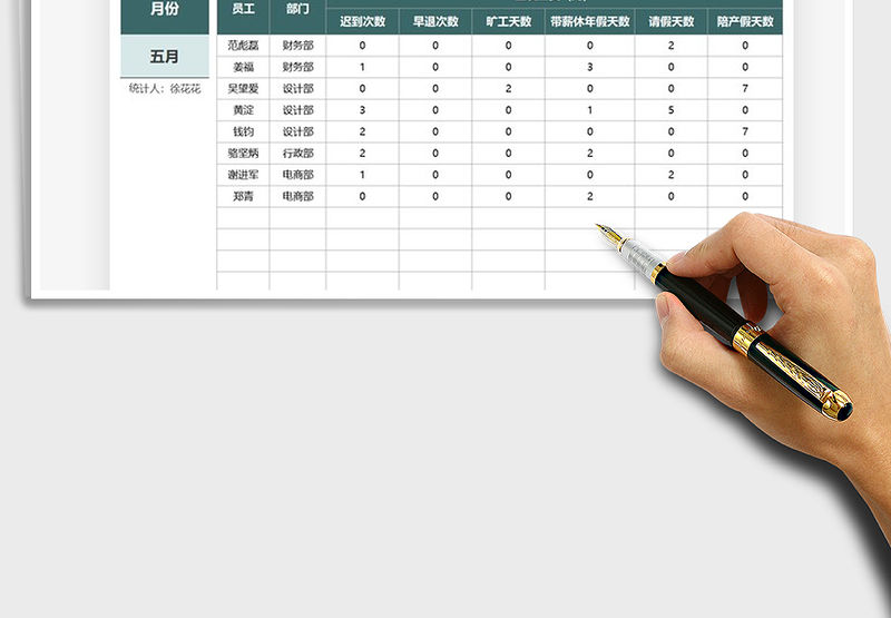 2021年員工考勤表--自動公式計算-統計實際出勤包含