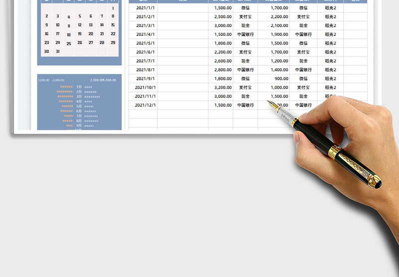 2021年財務收入支出明細表(自動計算)包含