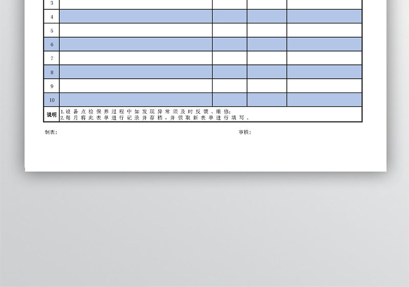 首頁 > EXCEL表格 > 記錄表 > 設備日常檢查維修保養(yǎng)記錄表.XLSX 【圖片、文字、動畫均可編輯】