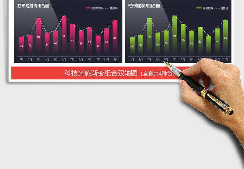 2021年綠色噴繪效果系列圖表 柱形圖折線圖組合圖包含