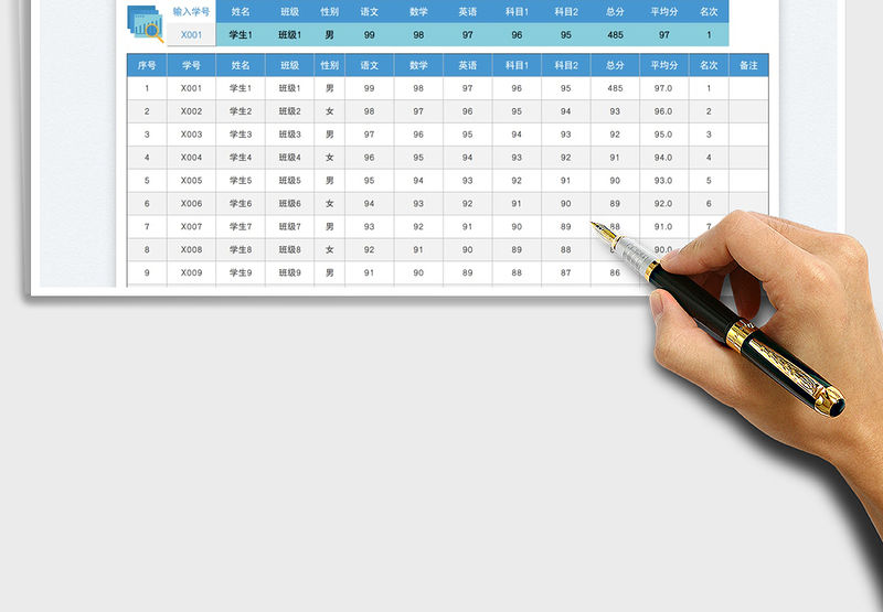 2022中小學生期末考試成績統計表Excel模板免費下載包含