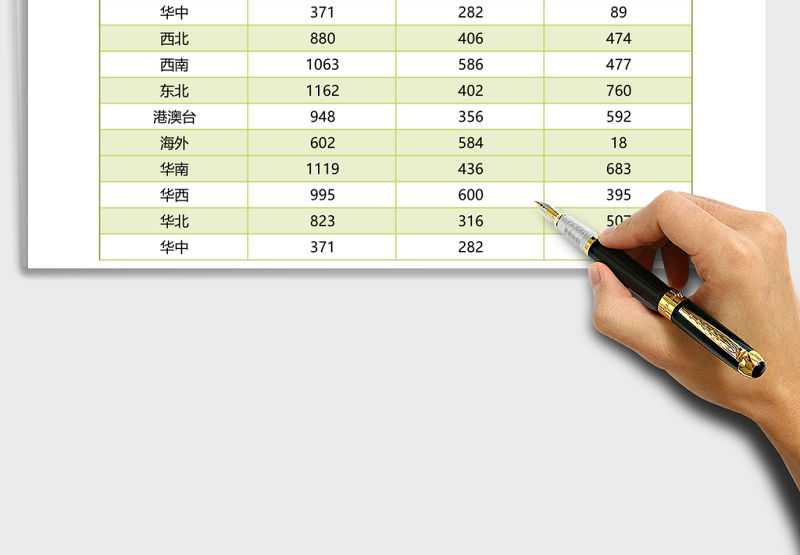 綠色紋理地域銷售簇狀柱形圖excel模板包含