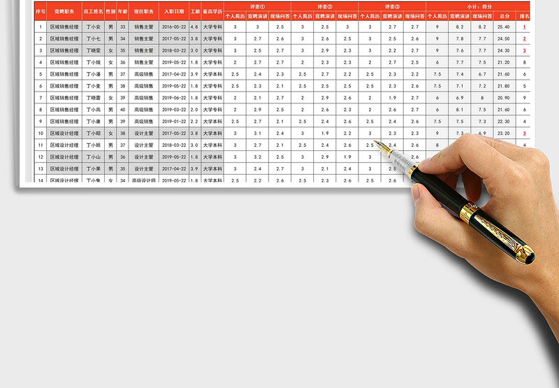 2021年面試評分統計表(統計、排名、等級評定均為自動)免費下載包含