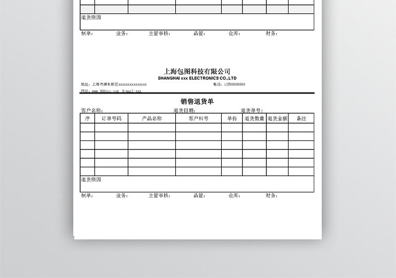 工圖網提供銷售退貨單表格模板Excel供會員免費下載。更多精彩黨課PPT素材,盡在工圖網。