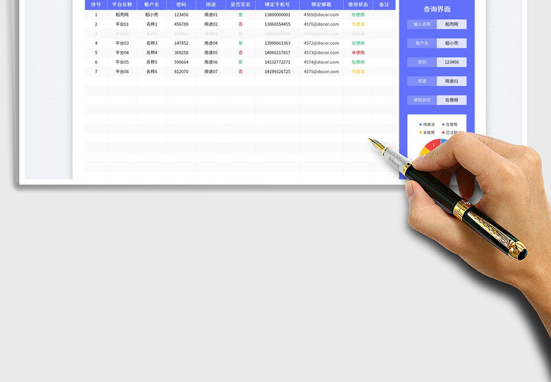 賬號密碼管理表包含