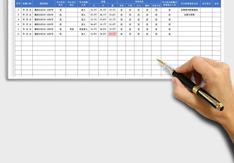 2021學生個人身體健康狀況監測表(自動預警)免費下載包含