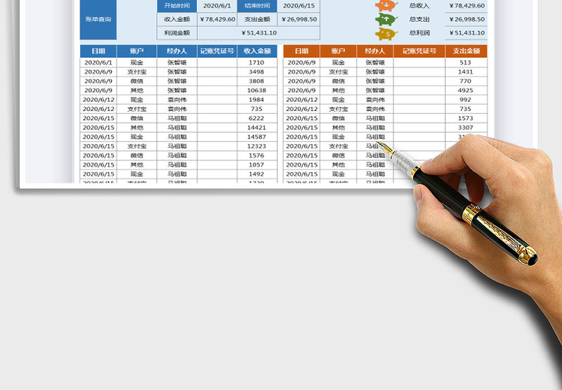2021年收支表(可打印,查詢,顏色區分,自動計算)包含