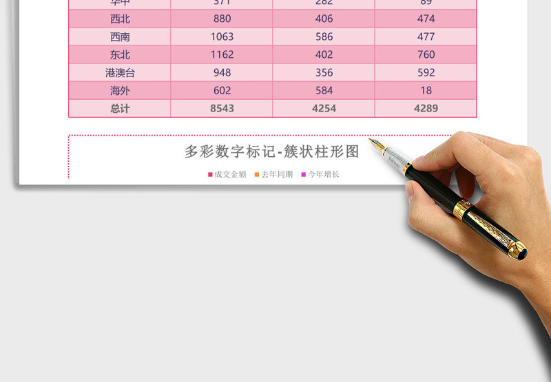 地域銷售簇狀柱形圖折線圖excel模板包含