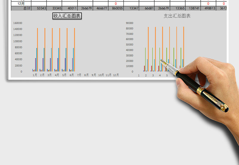 2021年多賬戶收支管理(合計匯總,按月圖表分析)包含