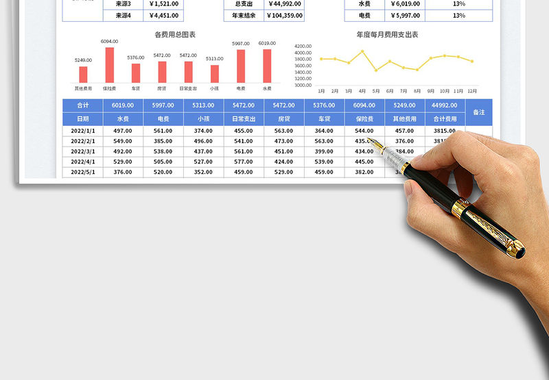 2021年收入支出統計表+可計算+圖表分析)免費下載包含