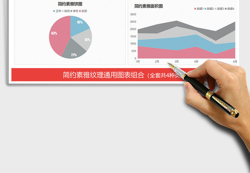 簡(jiǎn)約素雅紋理圖表模板餅圖柱形圖 Array