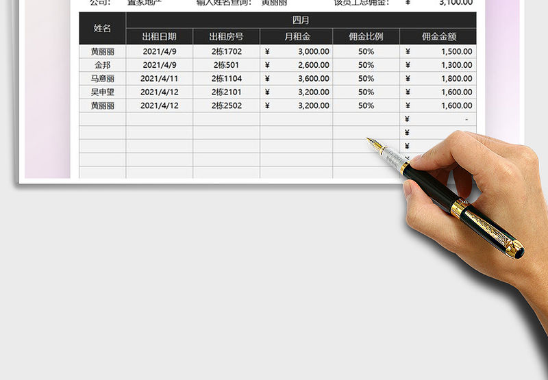 2021房地產(chǎn)中介出租傭金統(tǒng)計表免費下載