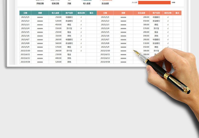 2021財務收入支出記賬表-帶日歷免費下載包含