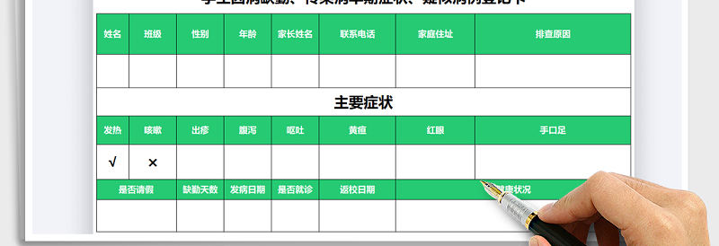 學(xué)生因病缺勤-疑似病例登記卡 Array