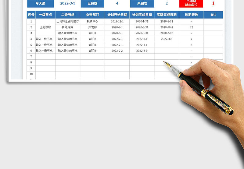 項目時間節點計劃進度甘特圖Excel表格模板包含