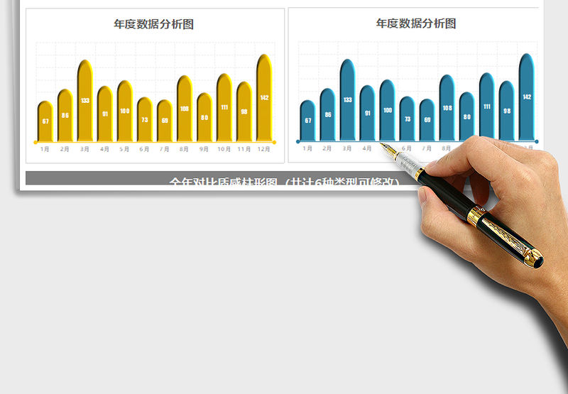 2021年小清新彩色數據表柱形圖 對比分析圖表模板包含