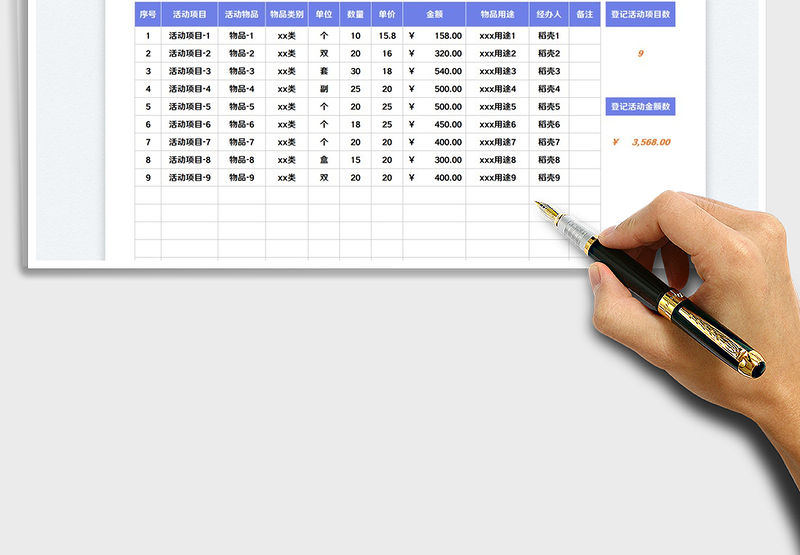 2021年活動物料清單表包含