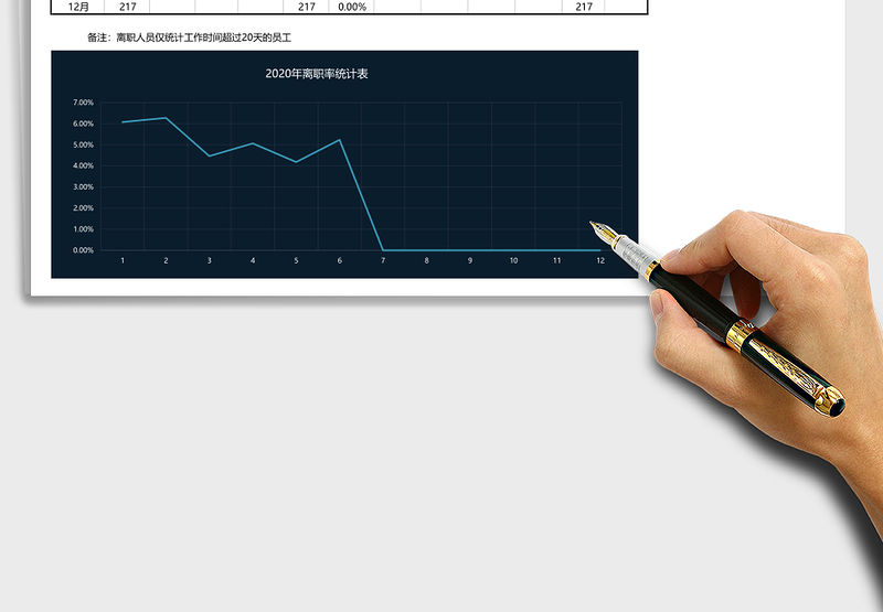2021年年度員工流失率比較分析圖表模板(含同比分析)包含