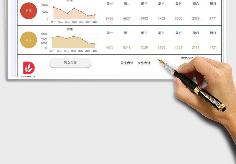 銷售業(yè)績分析男女統(tǒng)計圖表免費(fèi)下載