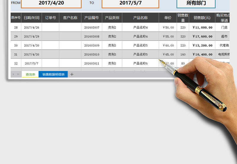 2021年銷售業(yè)績明細查詢(全體或任一部門同時,任意日期智能