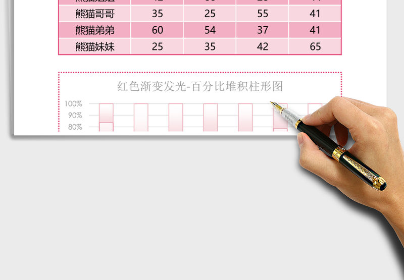 綠色員工業績統計堆積柱形圖Excel模板包含