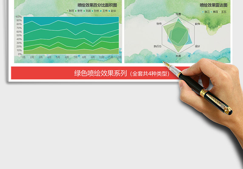 分析表 > 2022年綠色噴繪系列圖表 員工能力分析 趨勢對比免費下載.XLSX