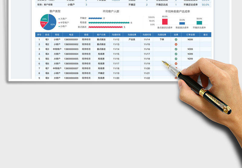 2021年客戶跟進管理表自動統計任務標記客戶包含