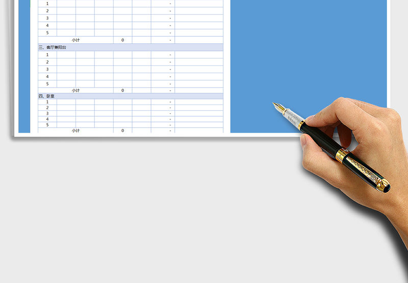 裝修預(yù)算表(J金額自動(dòng)計(jì)算) Array