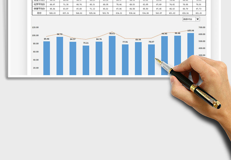 首頁 > Excel表格 > 分析表 > 2021年考試成績平均分動態(tài)分析圖表.XLSX 【圖片、文字、動畫均可編輯】