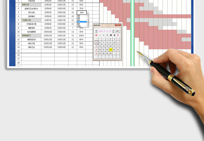 項目時間節點計劃進度甘特圖Excel表格模板包含