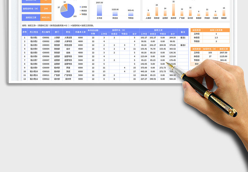 2021年考勤表-考勤加班統計表包含