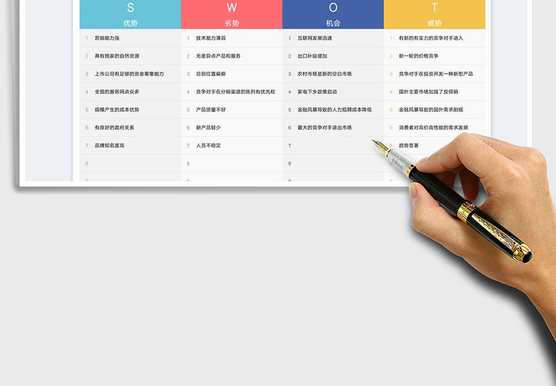 2022SWOT戰(zhàn)略項目分析表免費下載
