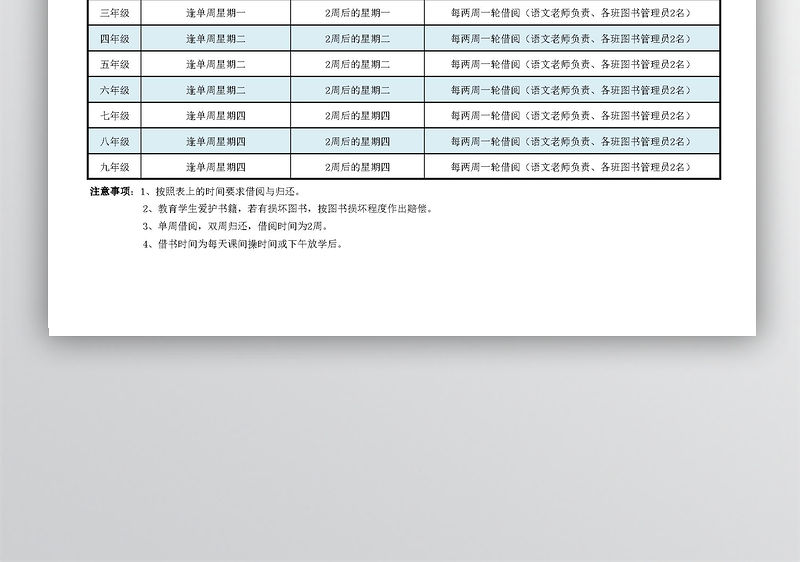 學校圖書借閱時間安排表,1920x1080:0DPI,EXCEL文檔,下載,EXCEL白色,免費模板EXCEL格式,公司文檔,文件,合同,打印合同,電子文檔,EXCEL模板,商務,商務文檔,簡潔大方,可編輯文檔,,,,圖書借閱時間 Array