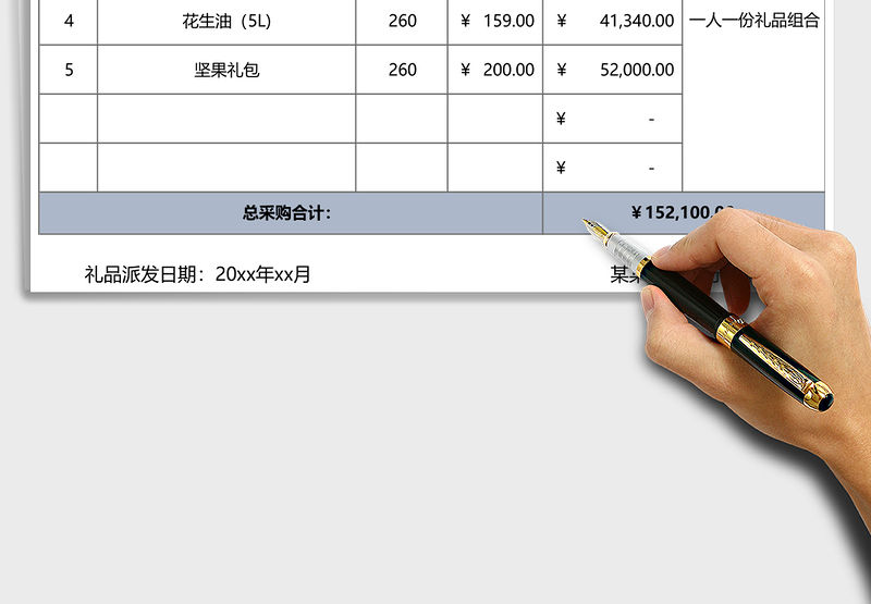 2021年行政端午禮品采購費用表