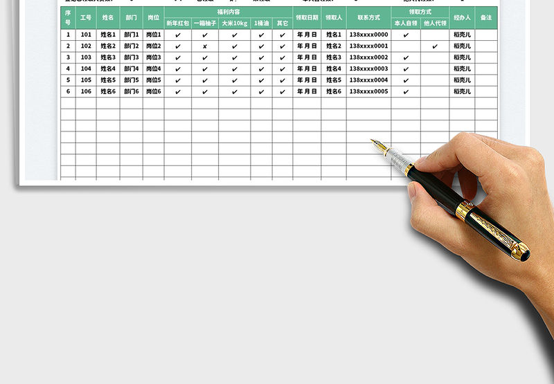 元旦福利領取登記表免費下載