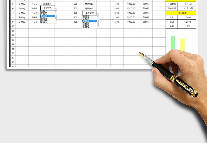 2021年費用收支明細表(自動累計——選擇框變色功能)包含