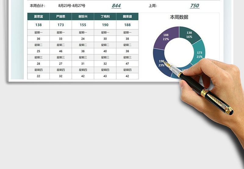 銷售員銷售數量對比分析表格excel表格模板包含