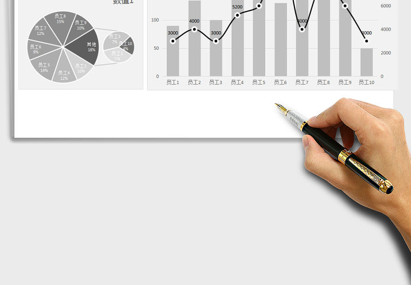 2022年輕量簡約系列圖表 柱形圖折線圖餅圖包含