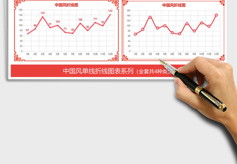 2021年中國風折線圖表 趨勢對比分析圖包含