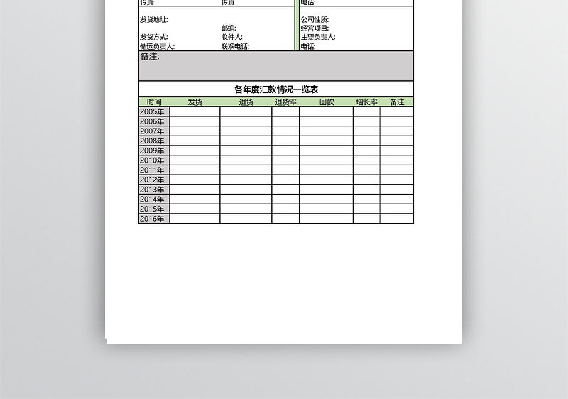 公司客戶檔案信息Excel模板表格包含