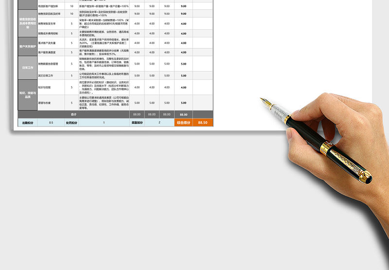 一般銷售人員績效考核表(含自動計算、等級評價、任意 Array